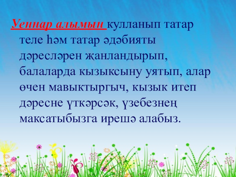 Слайд 11Уеннар алымын кулланып татар теле һәм татар әдәбияты дәресләрен җанландырып, балаларда