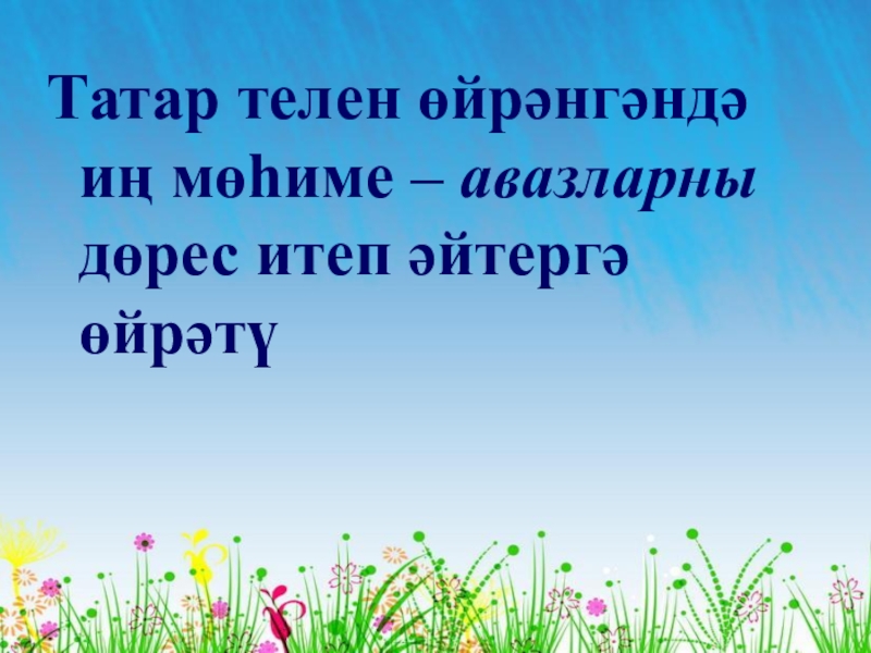 Слайд 6Татар телен өйрәнгәндә иң мөһиме – авазларны дөрес итеп әйтергә өйрәтү