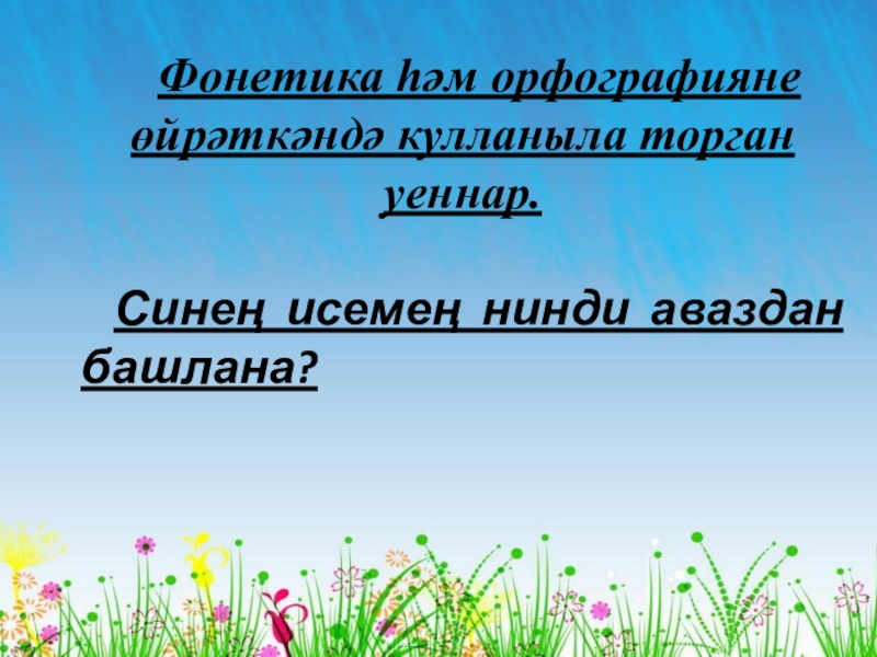 Фонетика һәм орфографияне өйрәткәндә кулланыла торган уеннар.Синең исемең нинди аваздан башлана?