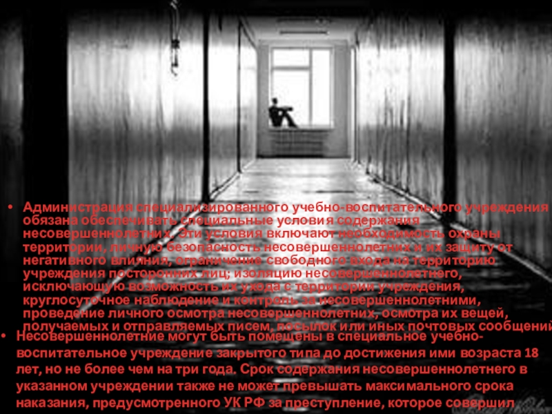 Несовершеннолетние могут быть помещены в специальное учебно-воспитательное учреждение закрытого типа до достижения ими возраста 18 лет, но не более чем на три года. Срок содержания несовершеннолетнего в указанном учреждении также не может превышать максимального срока наказания, предусмотренного УК РФ за преступление, которое совершил несовершеннолетний.