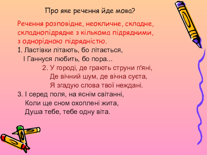 Слайд 14Про яке речення йде мова?
