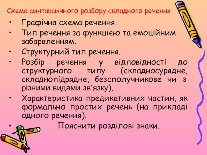Слайд 5Схема синтаксичного розбору складного речення