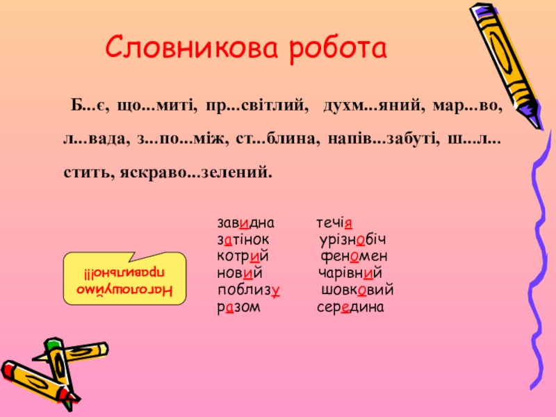 Слайд 18Словникова робота