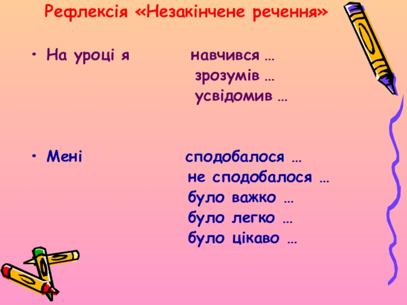 Слайд 20Рефлексія «Незакінчене речення»