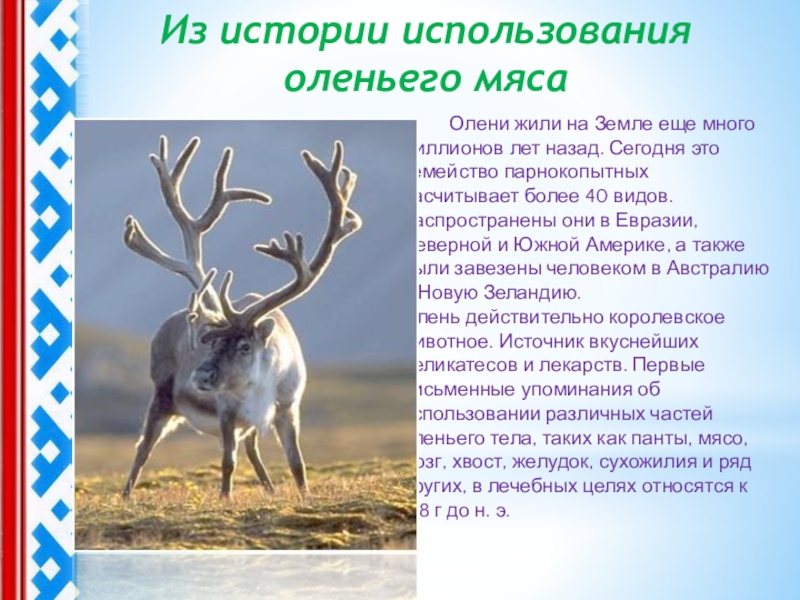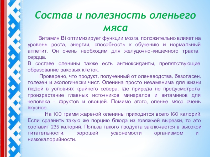 все материалы о полезности употребления оленьего мяса объединить в буклет