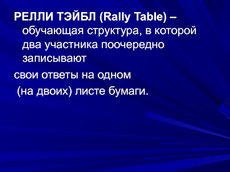 Слайд 18РЕЛЛИ ТЭЙБЛ (Rally Table) – обучающая структура, в которой два участника