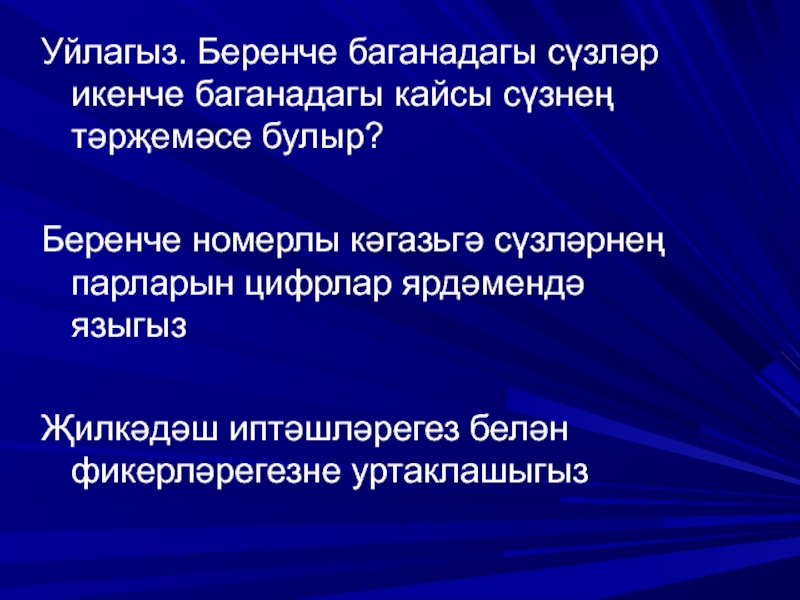 Уйлагыз. Беренче баганадагы сүзләр икенче баганадагы кайсы сүзнең тәрҗемәсе булыр?