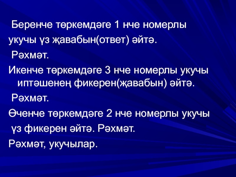 укучы үз җавабын(ответ) әйтә.