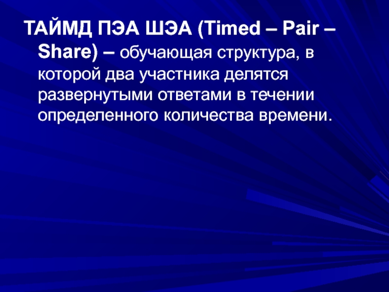 Слайд 20ТАЙМД ПЭА ШЭА (Timed – Pair – Share) – обучающая структура,
