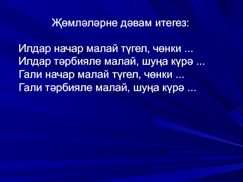 Слайд 10Җөмләләрне дәвам итегез: