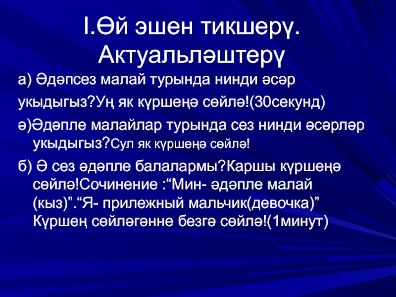 Слайд 3I.Өй эшен тикшерү. Актуальләштерү