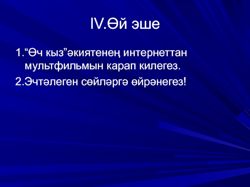 1.“Өч кыз”әкиятенең интернеттан мультфильмын карап килегез.