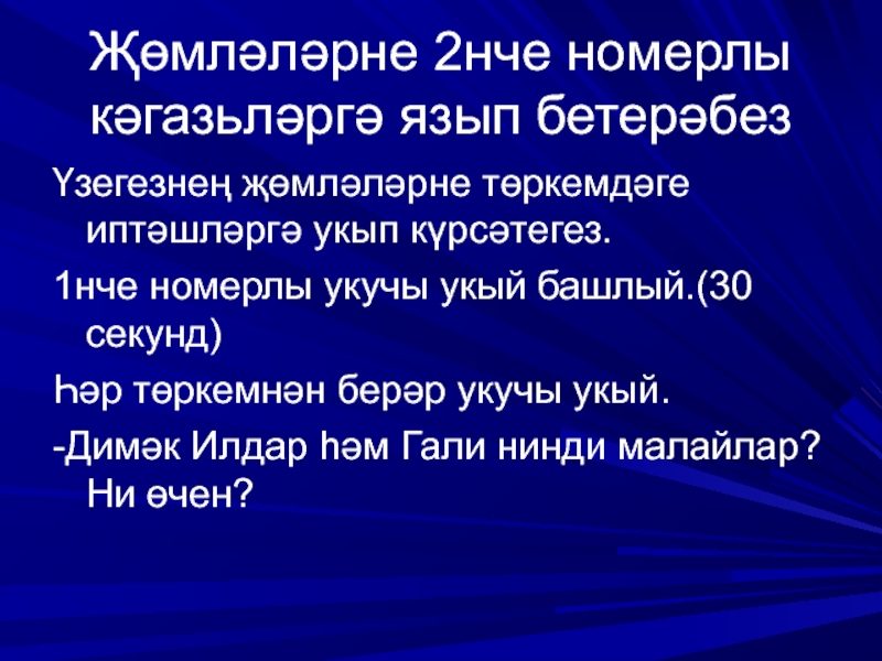 номерлы укучы укый башлый.(30 секунд)