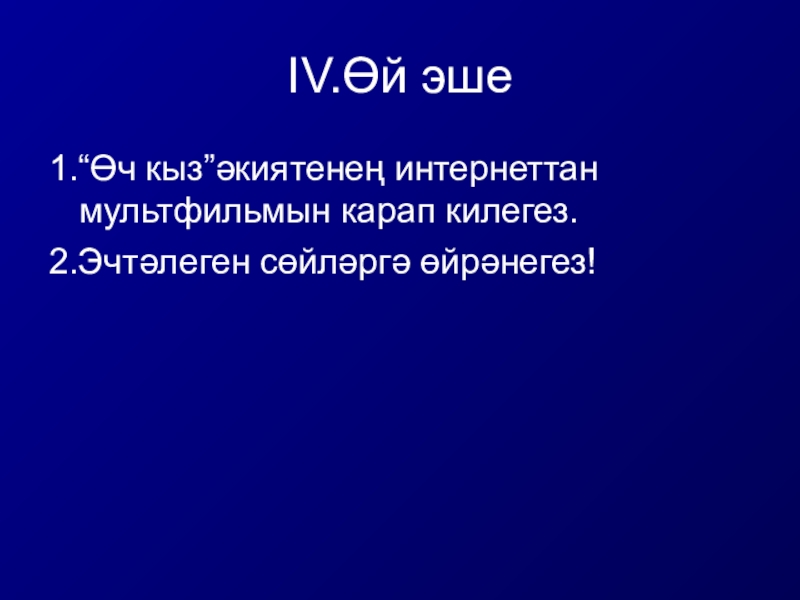 1.“Өч кыз”әкиятенең интернеттан мультфильмын карап килегез.