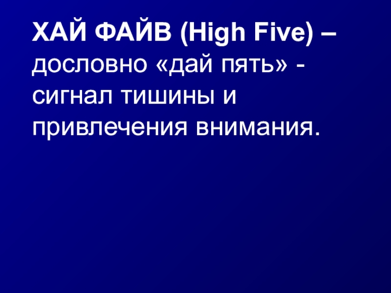 Слайд 2 ХАЙ ФАЙВ (High Five) – дословно «дай пять» - сигнал