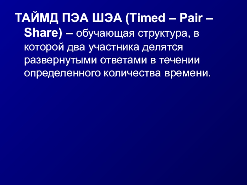 Слайд 20ТАЙМД ПЭА ШЭА (Timed – Pair – Share) – обучающая структура,