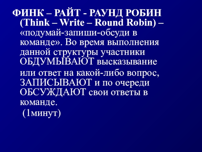 Слайд 4ФИНК – РАЙТ - РАУНД РОБИН (Think – Write – Round