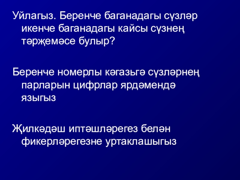 Уйлагыз. Беренче баганадагы сүзләр икенче баганадагы кайсы сүзнең тәрҗемәсе булыр?