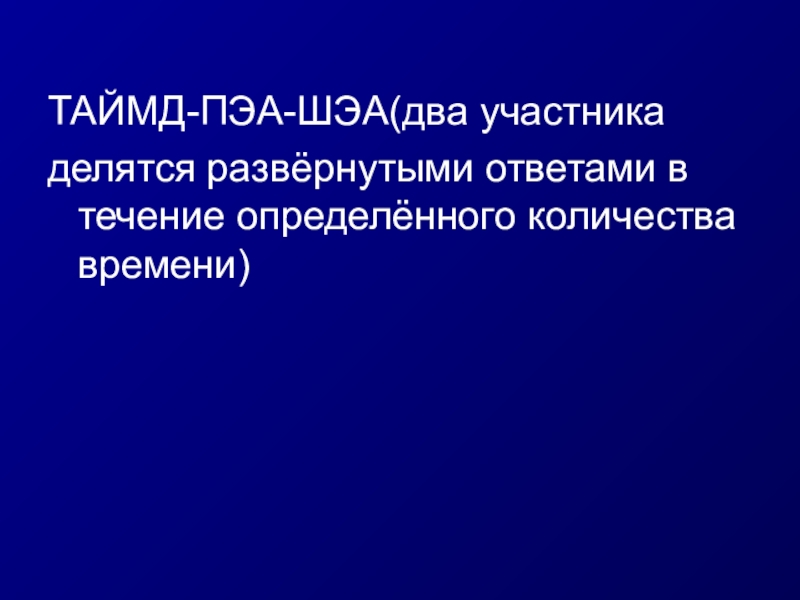 в которой два участника делятся развернутыми ответами в течении определенного количества времени.