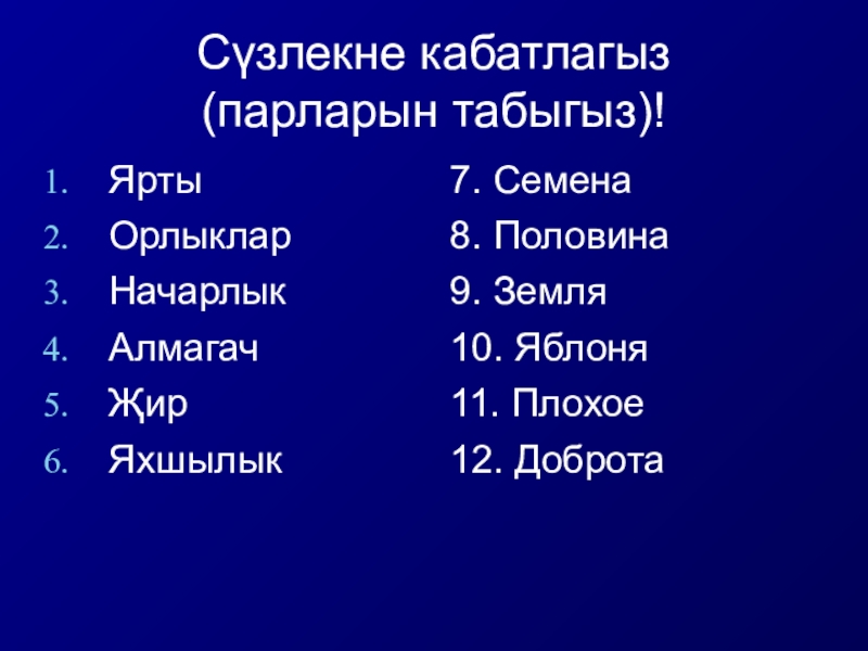Слайд 6Сүзлекне кабатлагыз