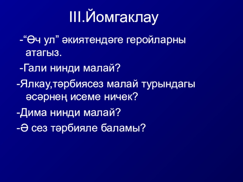 Слайд 23«Өч ул»әкияте.