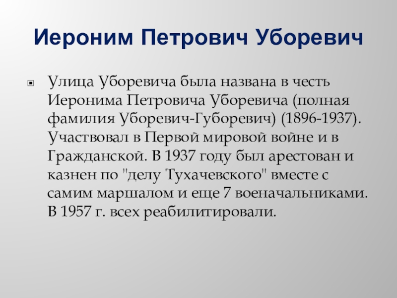 Улица Уборевича была названа в честь Иеронима Петровича Уборевича