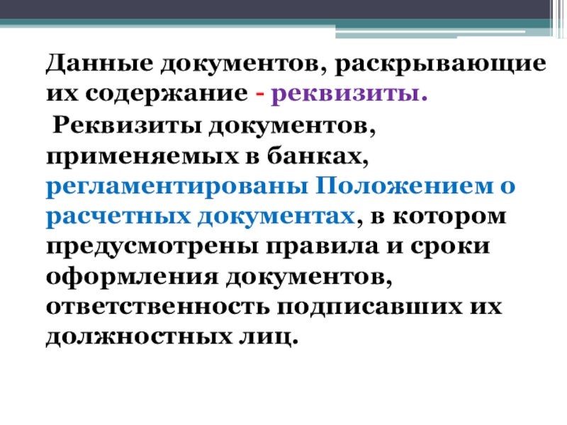 Слайд 13Данные документов, раскрывающие их содержание - реквизиты.