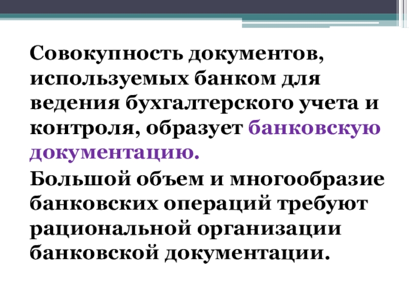 Большой объем и многообразие банковских операций требуют рациональной организации банковской документации.