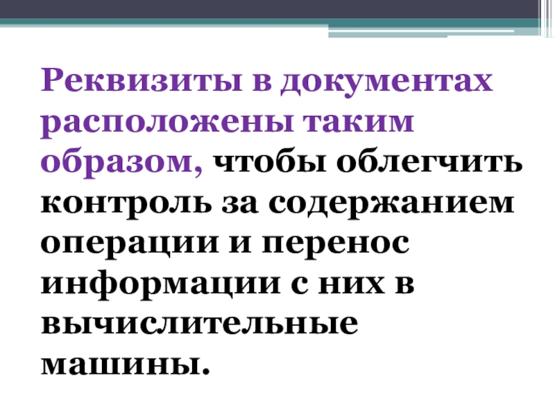 Слайд 17Реквизиты в документах расположены таким образом, чтобы облегчить контроль за содержанием