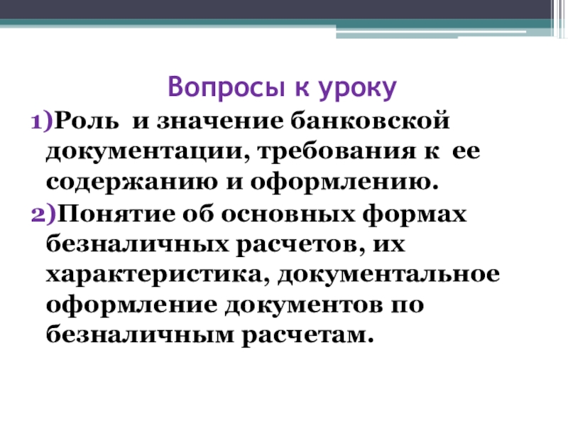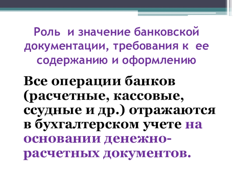 1)Роль и значение банковской документации, требования к ее содержанию