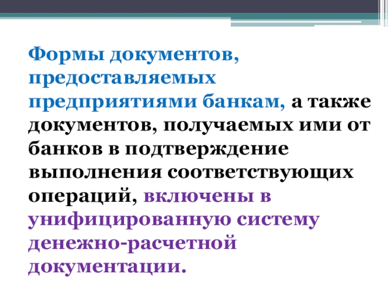 Слайд 9Формы документов, предоставляемых предприятиями банкам, а также документов, получаемых ими от