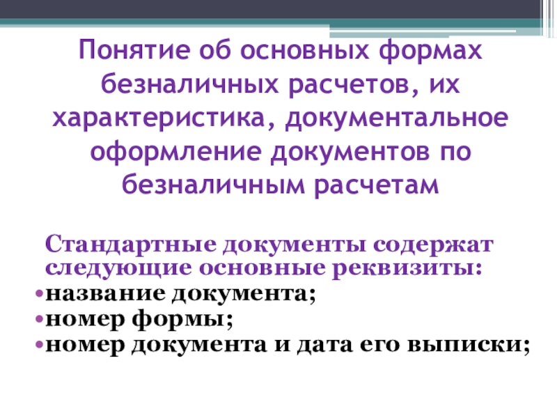 Понятие об основных формах безналичных расчетов, их характеристика, документальное оформление документов по безналичным расчетам