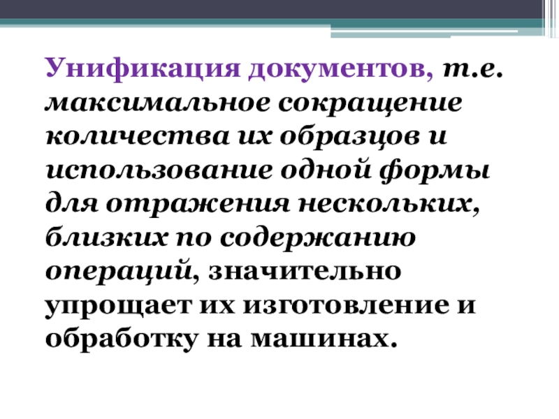 Слайд 8Унификация документов, т.е. максимальное сокращение количества их образцов и использование одной