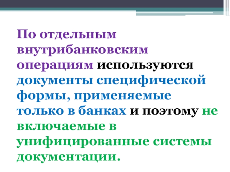 Слайд 11По отдельным внутрибанковским операциям используются документы специфической формы, применяемые только в