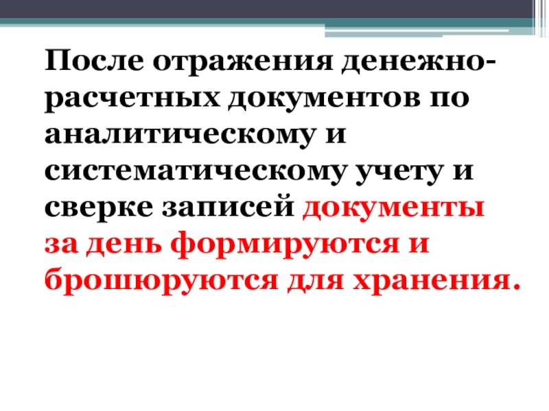 Слайд 32После отражения денежно-расчетных документов по аналитическому и систематическому учету и сверке