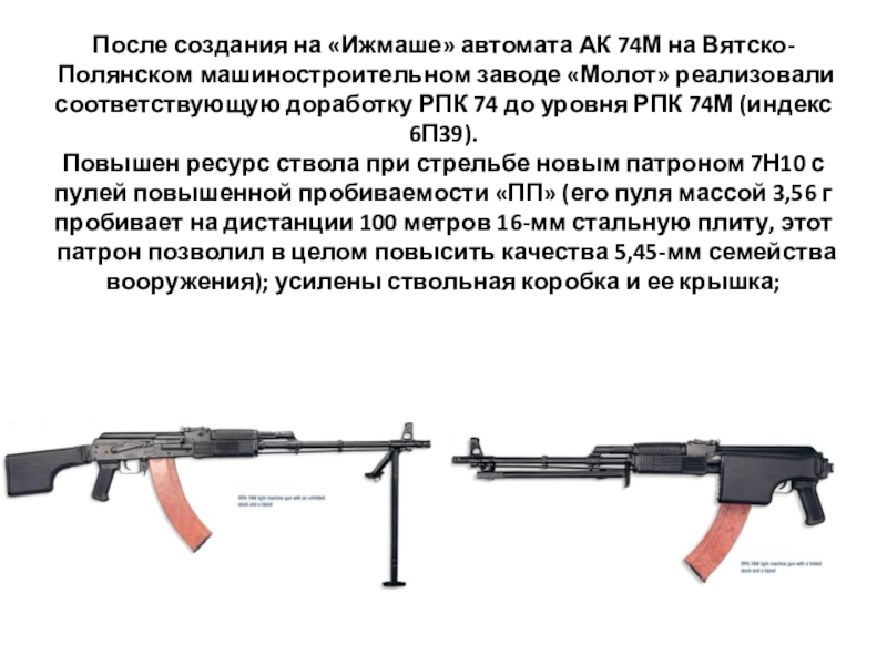 Слайд 20После создания на «Ижмаше» автомата АК 74М на Вятско-Полянском машиностроительном заводе