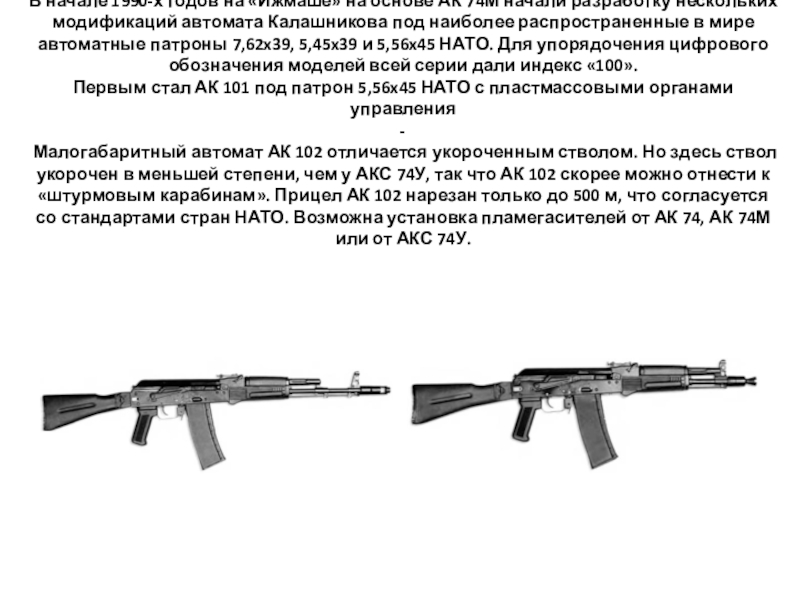 Слайд 10В начале 1990-х годов на «Ижмаше» на основе АК 74М начали