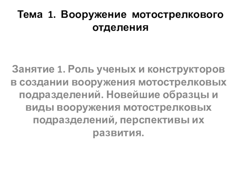Слайд 2Тема 1. Вооружение мотострелкового отделения