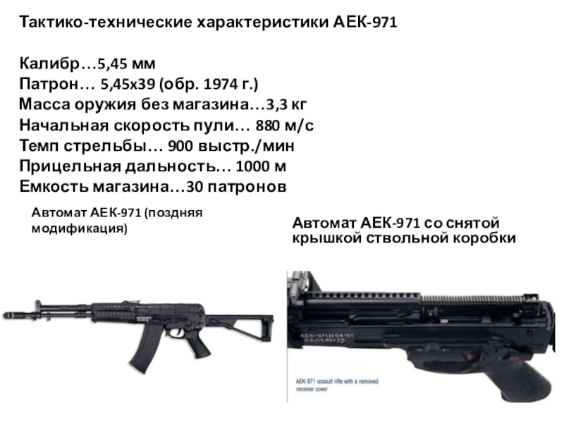 Слайд 14В автомате АЕК-971, созданном на Ковровском механическом заводе (КМЗ) под руководством