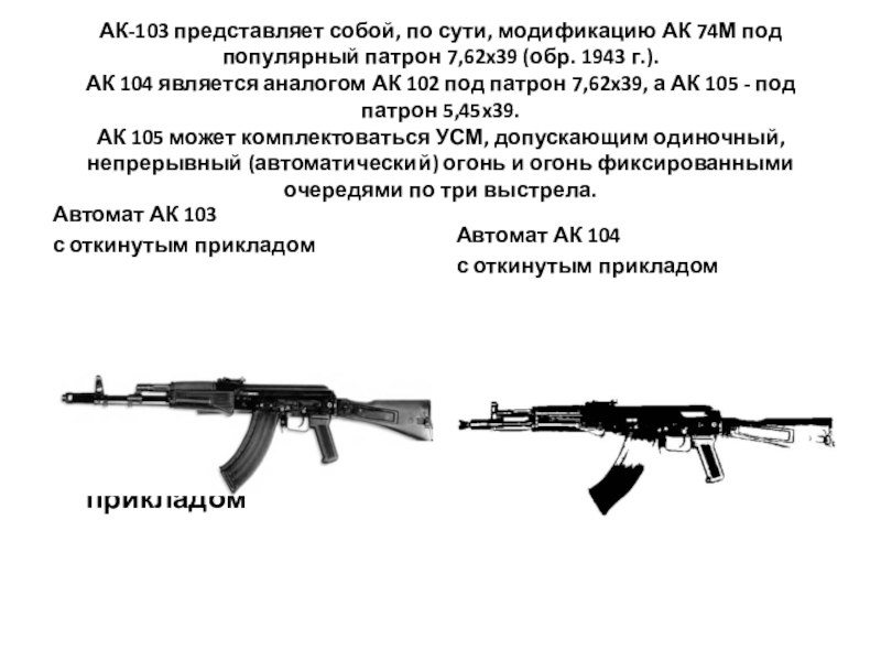 Слайд 11АК-103 представляет собой, по сути, модификацию АК 74М под популярный патрон