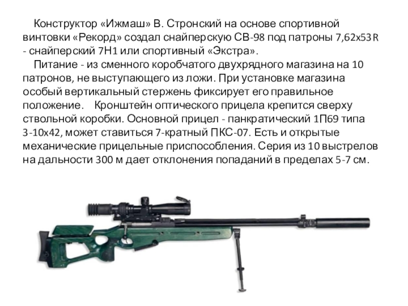 Слайд 28 Конструктор «Ижмаш» В. Стронский на основе спортивной винтовки «Рекорд»
