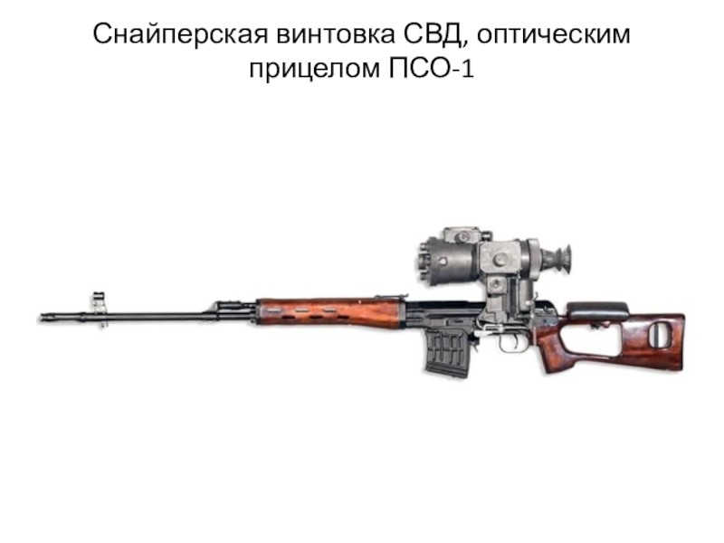 Слайд 24Снайперская винтовка СВД, оптическим прицелом ПСО-1
