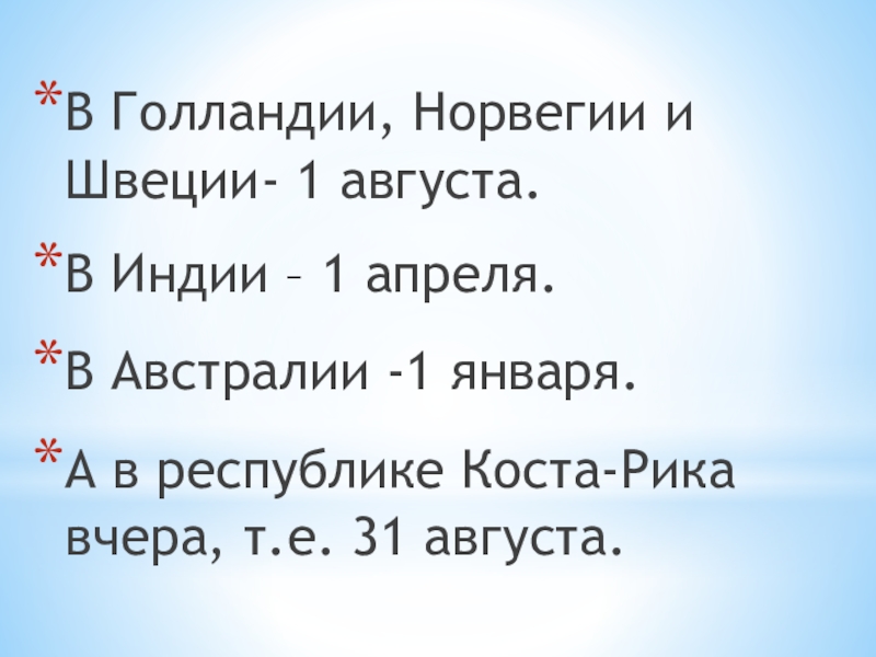 А в республике Коста-Рика вчера, т.е. 31 августа.