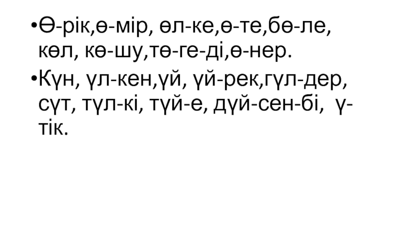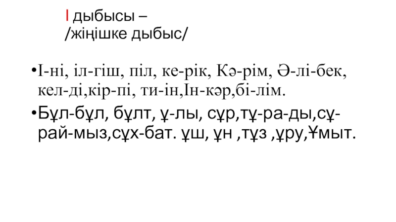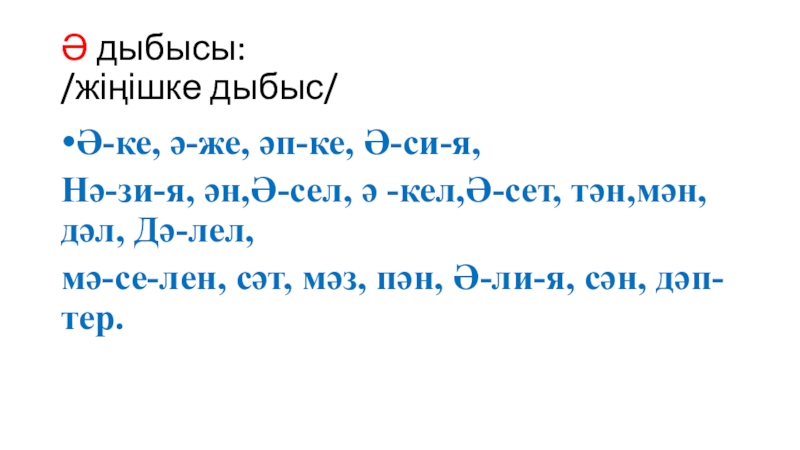 2. жіңішке /мягкие ә, ө, ү, і, е.