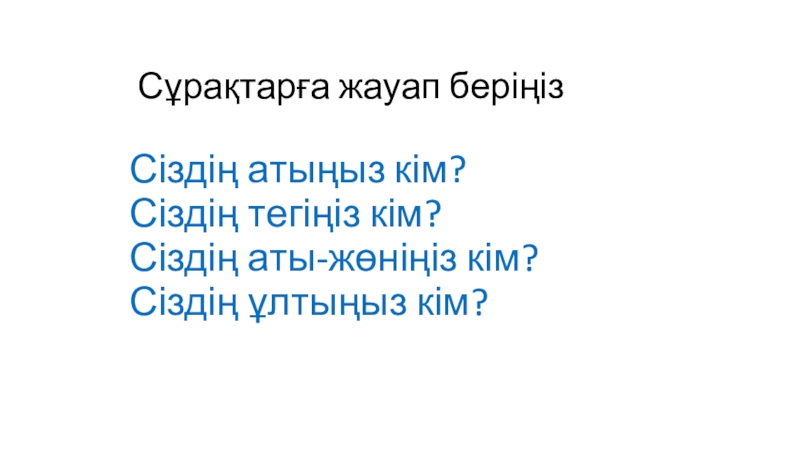 Слайд 12-Сіздің аты-жөніңіз кім?