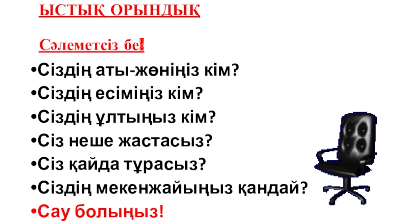 Слайд 24ЫСТЫҚ ОРЫНДЫҚ