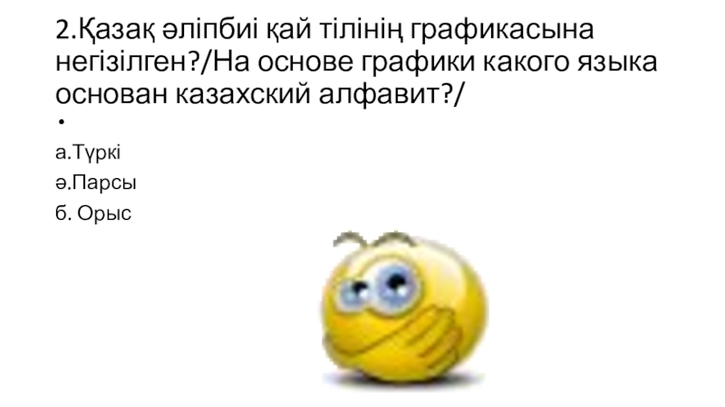 Слайд 292.Қазақ әліпбиі қай тілінің графикасына негізілген?/На основе графики какого языка основан