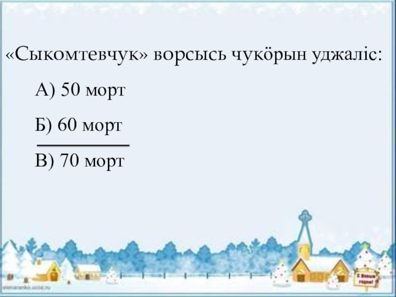 «Сыкомтевчук» ворсысь чукӧрын уджалiс:   А) 50 морт   Б) 60 морт   В)