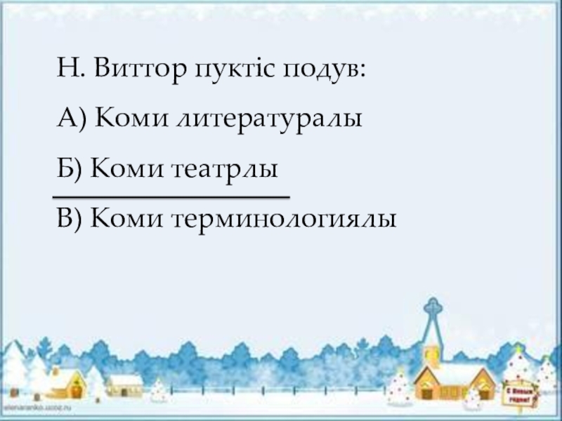 Н. Виттор пуктiс подув:А) Коми литературалыБ) Коми театрлыВ) Коми терминологиялы
