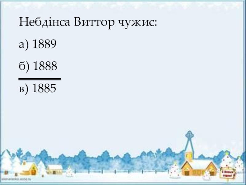 Небдiнса Виттор чужис:а) 1889б) 1888в) 1885